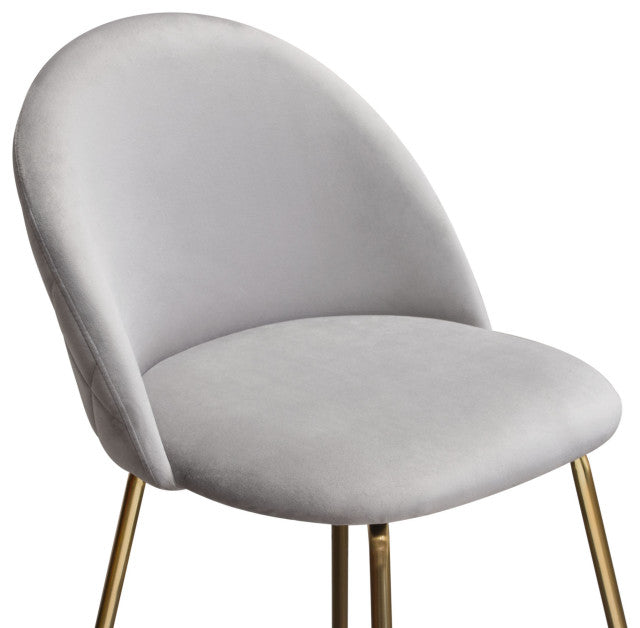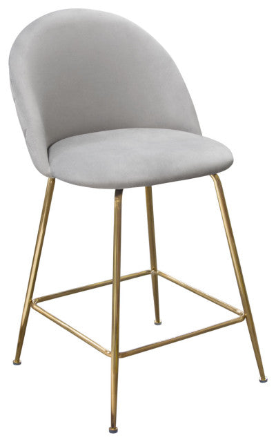 Set of 2 Counter Height Chairs, Gray Velvet With Brushed Gold Metal Legs By Diamond Sofa