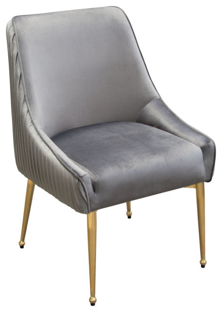 Set of (2) Quinn Dining Chairs Outside Pleat Detail in Grey Velvet Metal Leg By Diamond Sofa