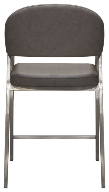 Set of Two Counter Height Chairs, Grey Leatherette With Brushed Steel Leg By Diamond Sofa