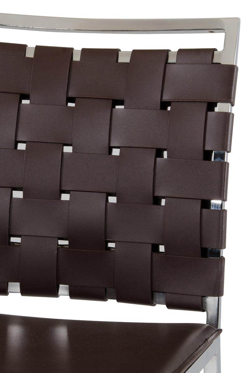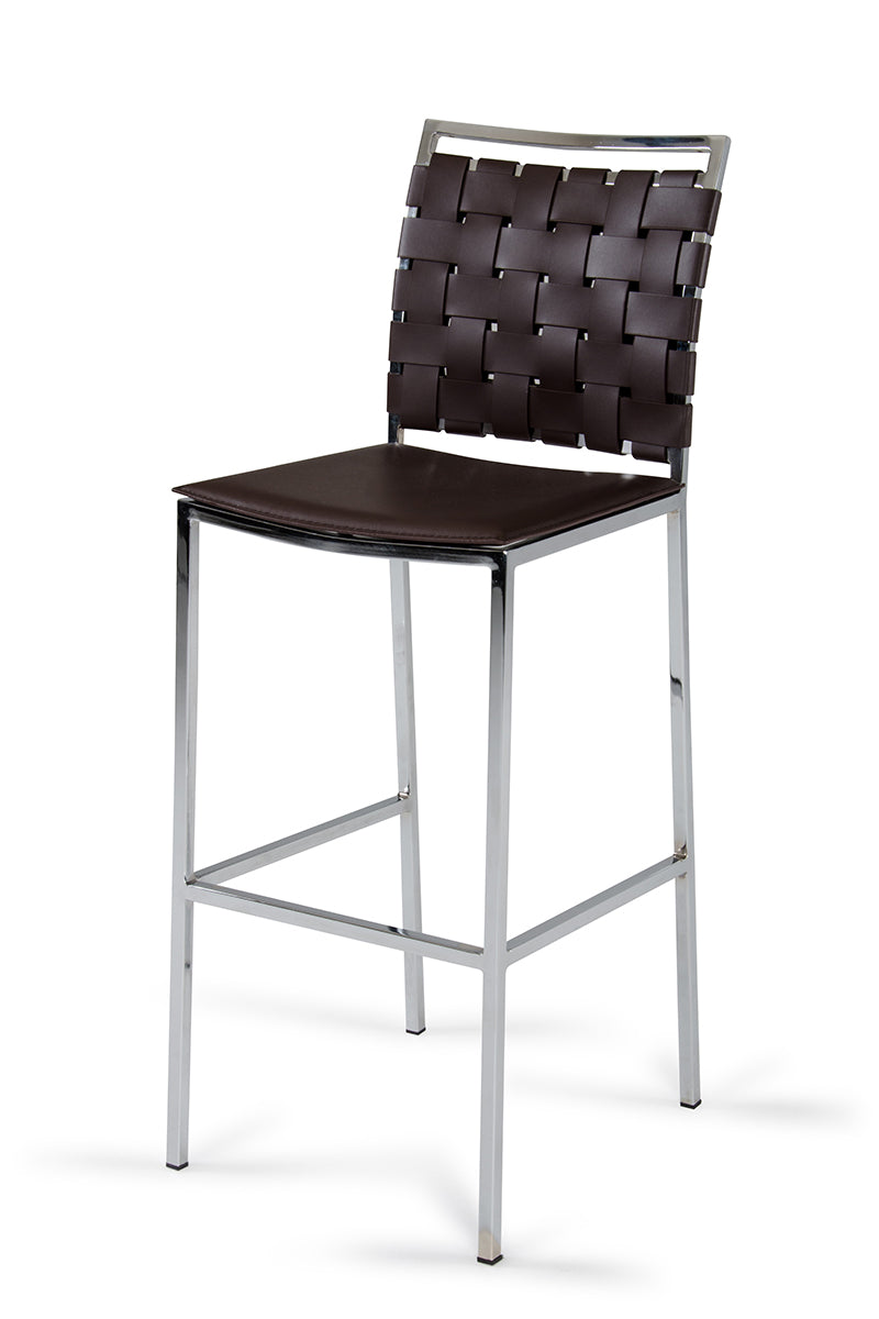 The Modrest Shasta Modern Brown Eco-Leather Bar Stool features an inspiring style upholstered in brown eco-leather. It features a stunning woven backrest and a sleek chrome frame with a U-shaped footrest. Rubber non-skid foot caps prevent scratches on the floor. This modern bar stool with a dimension of W16" x D16" x H43" and a seat height of 30 inches is available in color white.