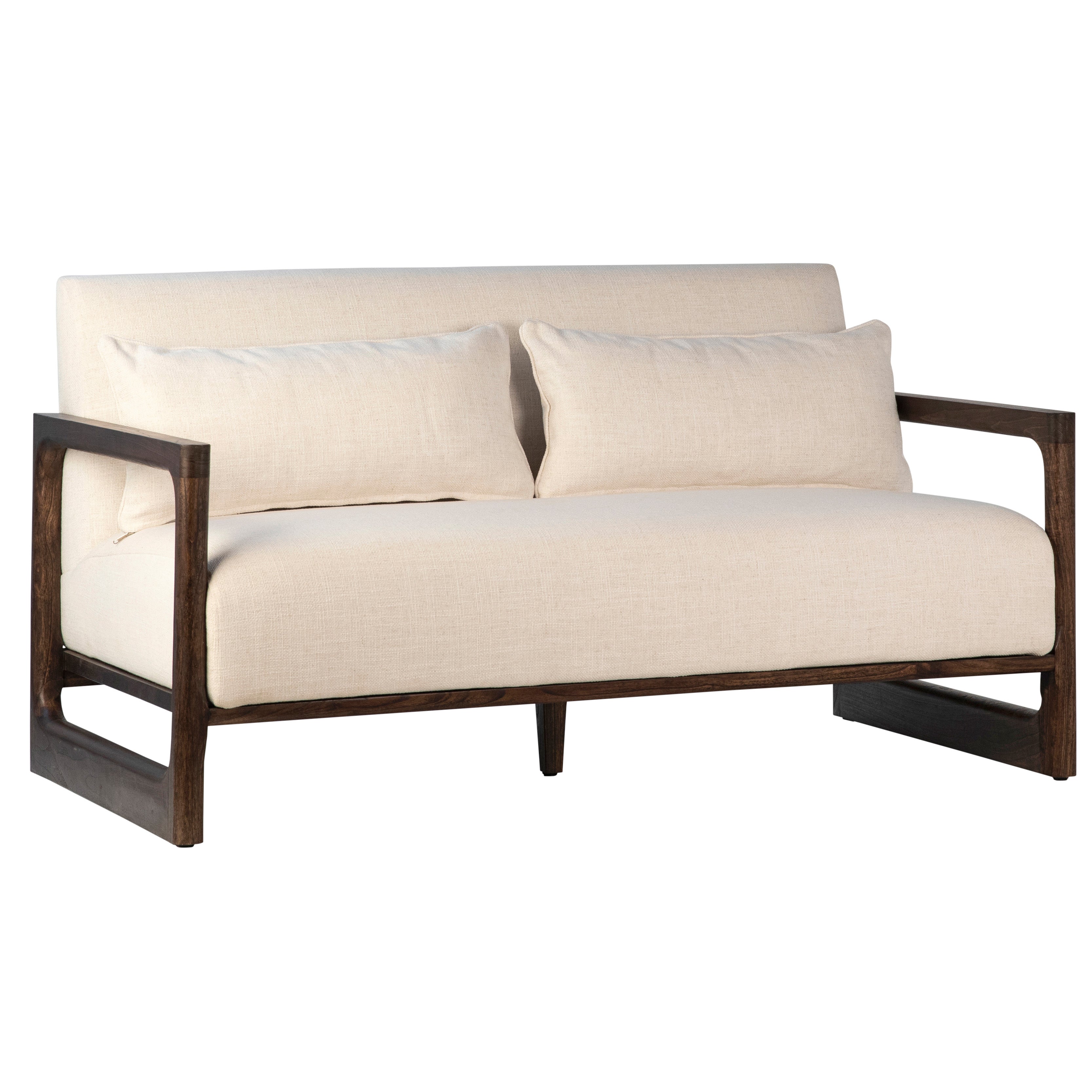Silverio Dark Brown Finish and White Sand Color Fabric Sofa
