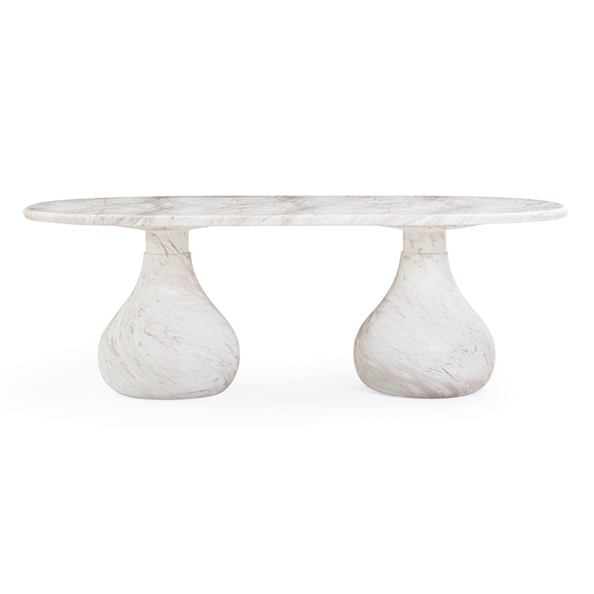 Smooch White Marble Print Indoor / Outdoor 87" Oval Dining Table Model: TOV-O54488