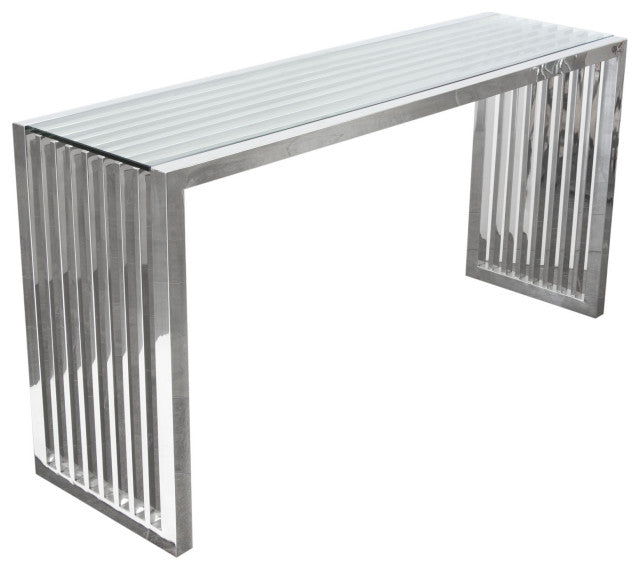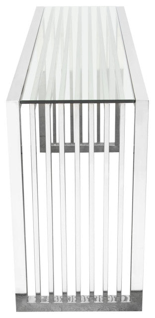 SOHO Rectangular Stainless Steel Console Table Clear, Tempered Glass Top By Diamond Sofa