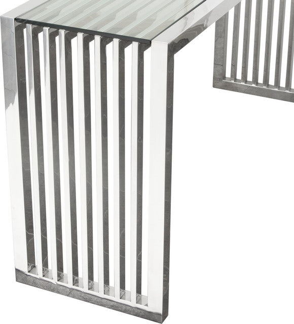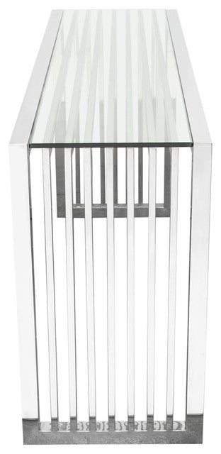 Soho Rectangular Stainless Steel Console Table With Tempered Glass Top By Diamond Sofa