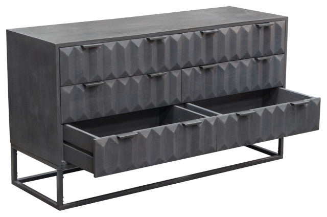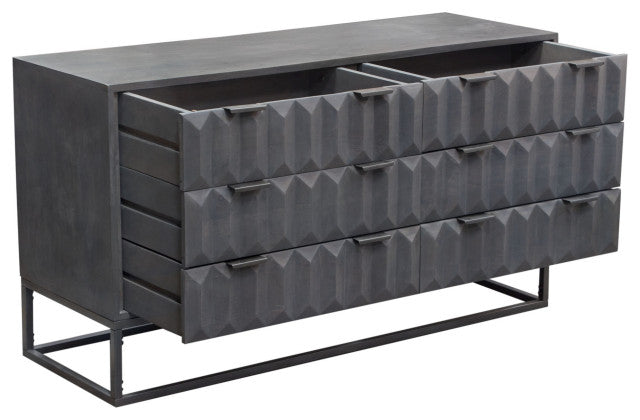 Spectrum 6-Drawer Solid Mango Wood Dresser, Smoke Gray, Gun Metal Finished Legs By Diamond Sofa