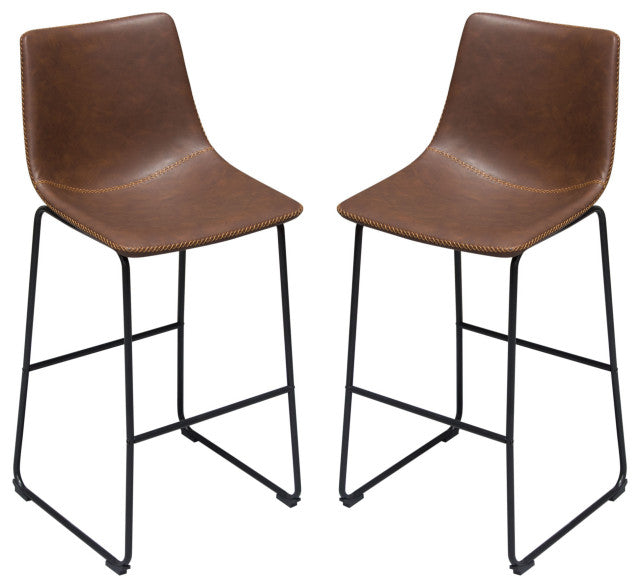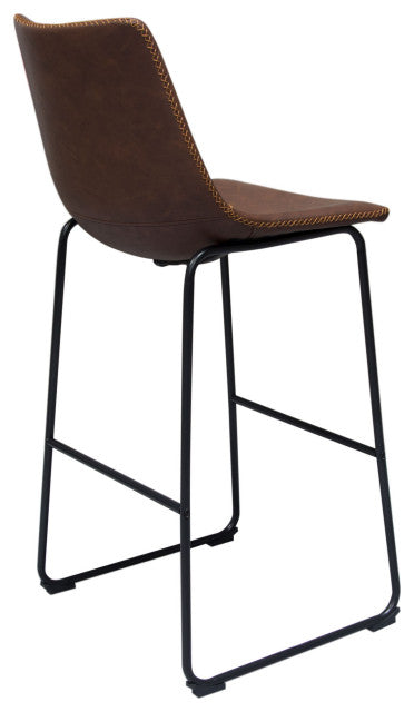 Theo Set of (2) Bar Height Chairs in Chocolate Leatherette Black Metal Base By Diamond Sofa