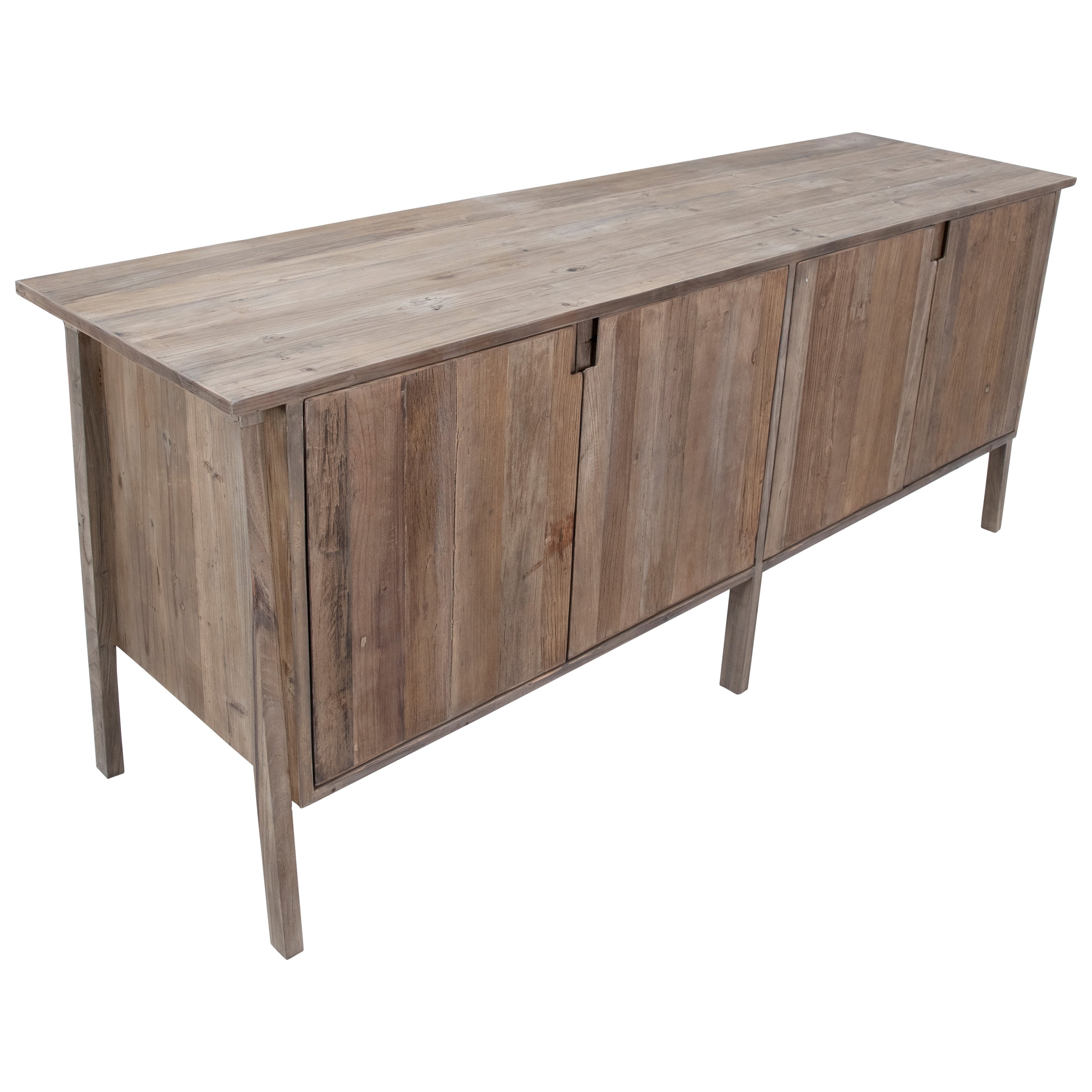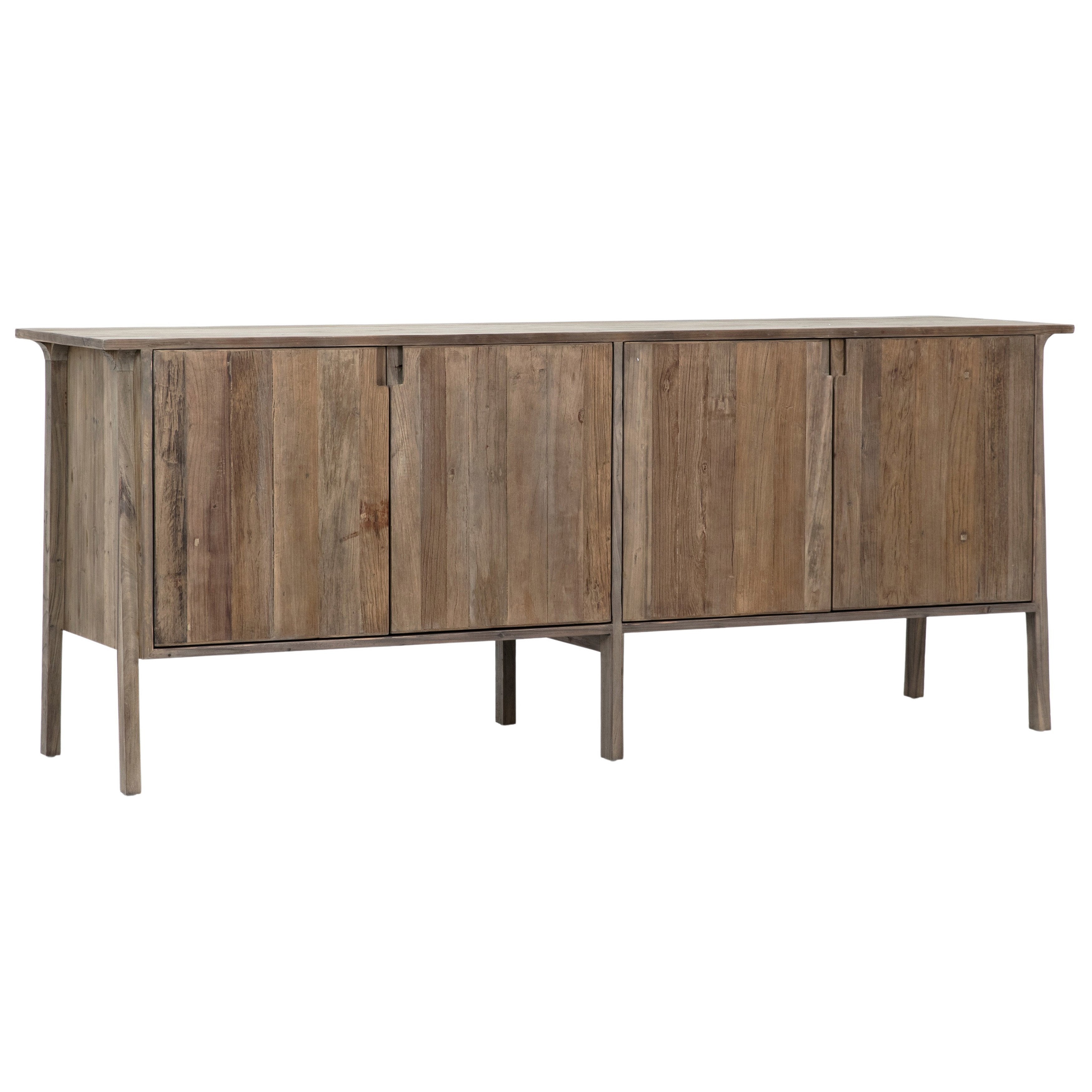 Simple in its design, this 79" sideboard is the perfect staple for your living space. Featuring a double set of butterfly opening doors and adjustable shelves, this sideboard has a customizable feel that will allow you to easily store books, extra kitchen supplies, and more. The carved out 'notch' grooves on the cabinet doors allow for easy storage access. The elevated angular legs and platform top offer a nod to mid centry design in an all natural color pallet.