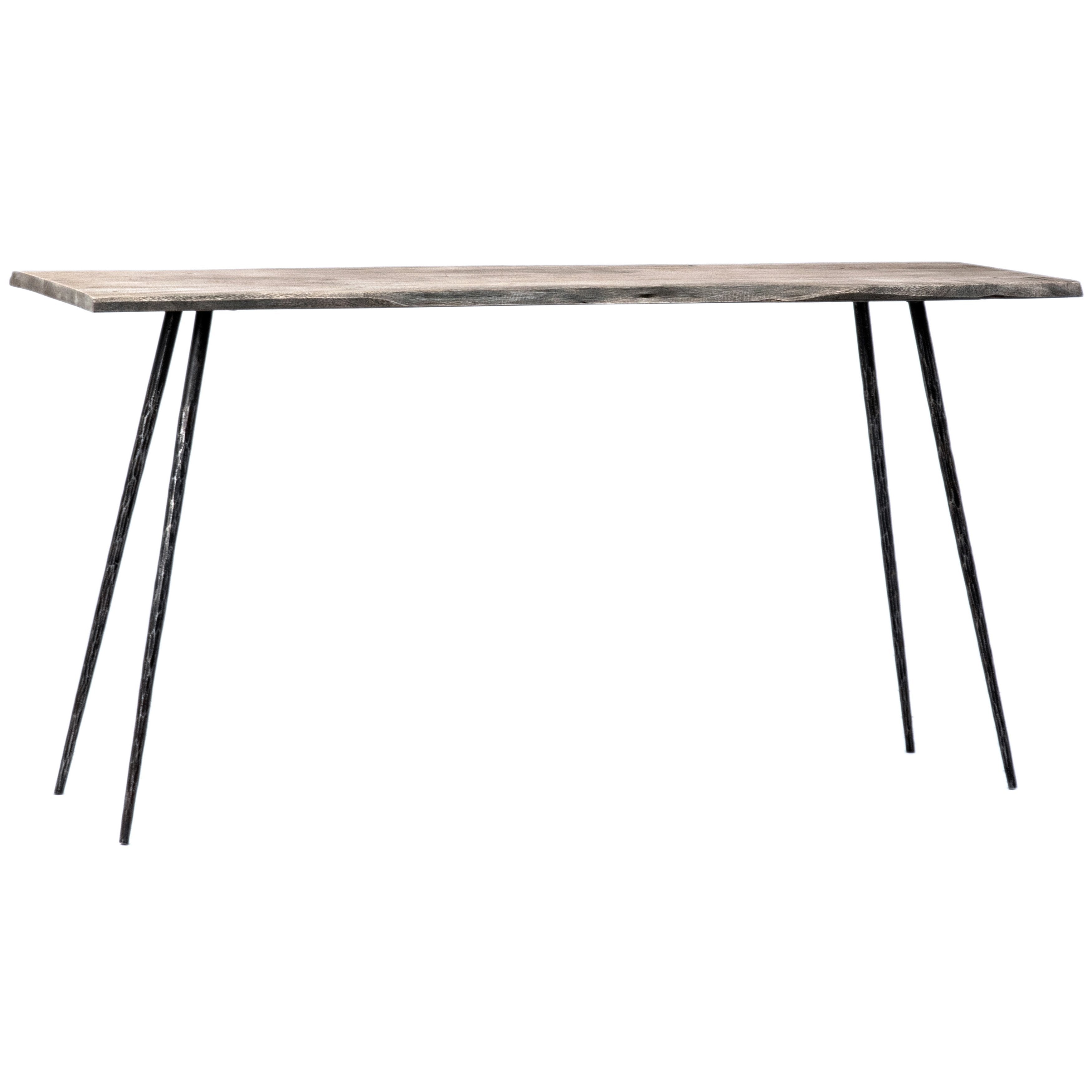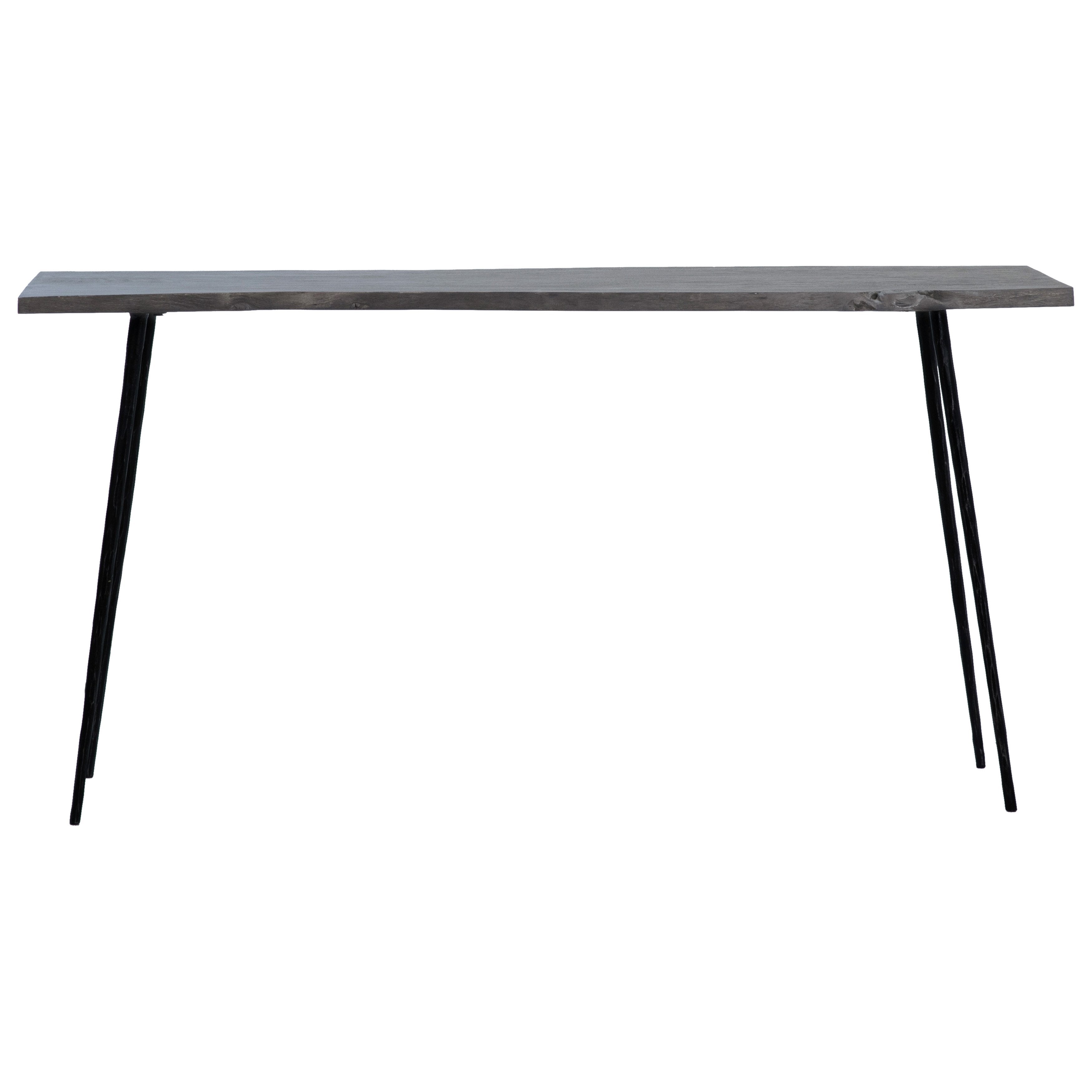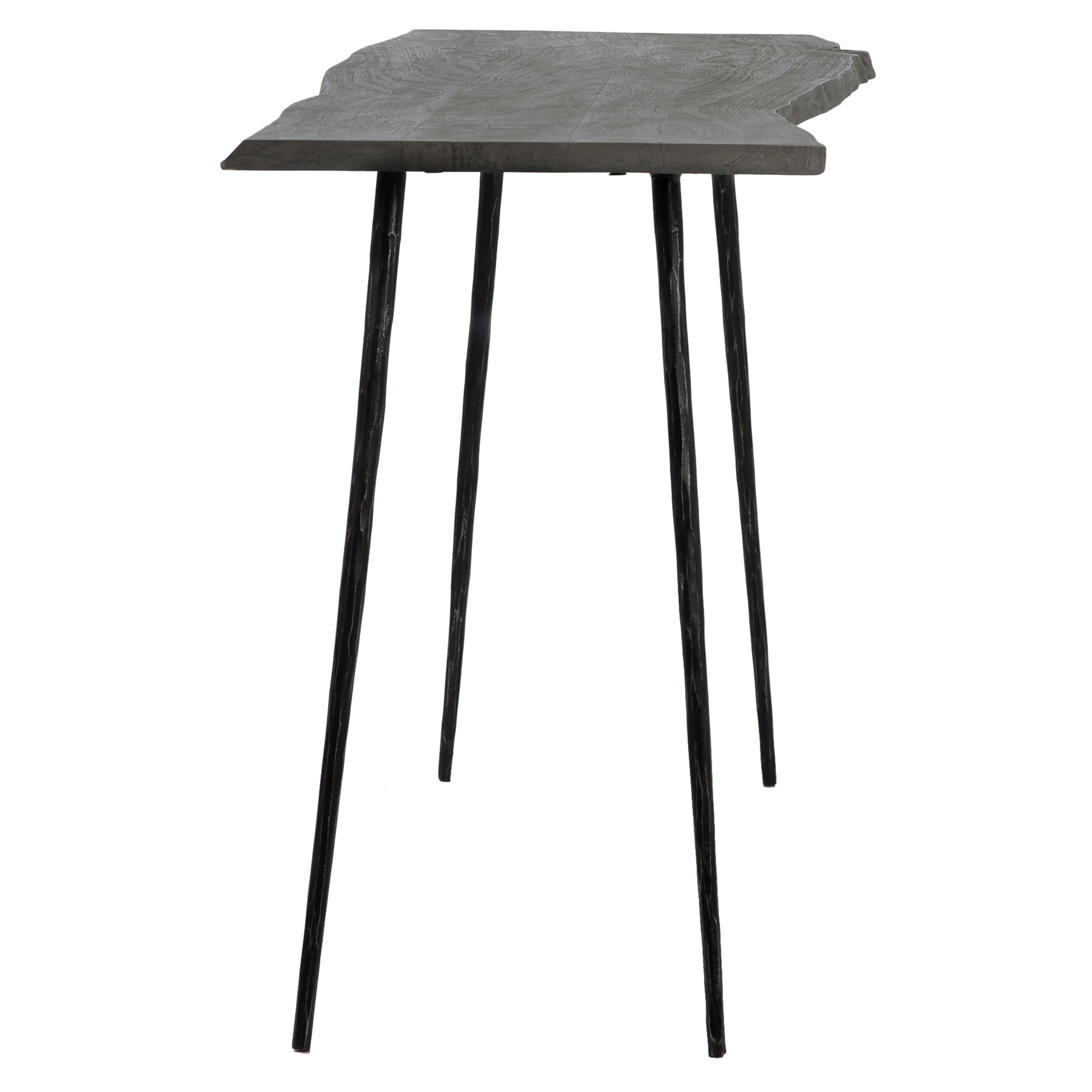 Velez Sandblasted Grey Finish and Antique Black Metal Legs Console Table
