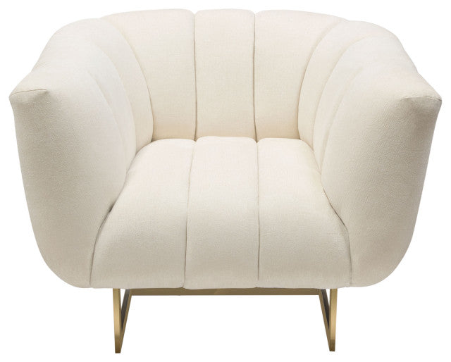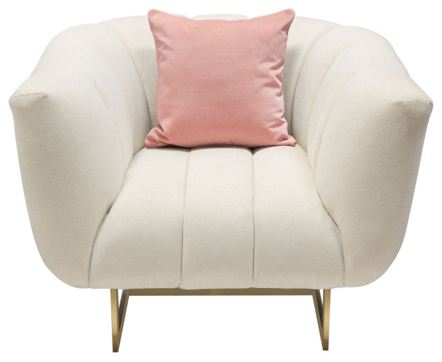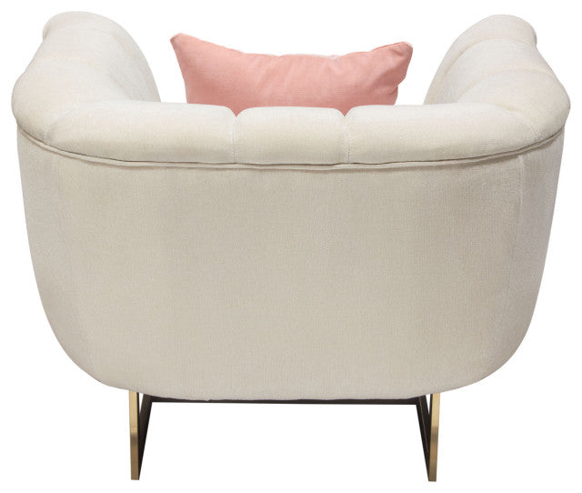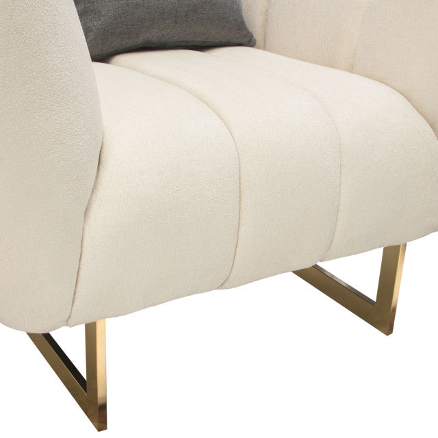 Venus Cream Fabric Chair With Contrasting Pillows and Gold Finished Metal Base By Diamond Sofa