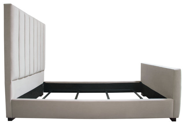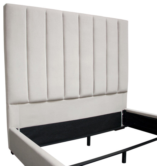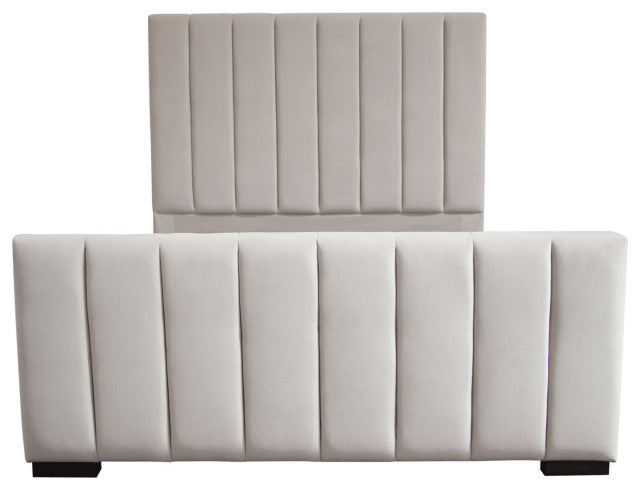 Venus Vertical Channel Tufted Queen Bed in Light Grey Velvet By Diamond Sofa