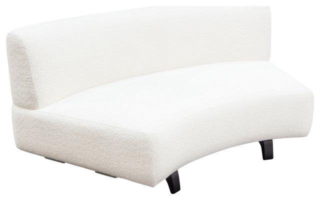 Vesper Curved Armless Sofa, Faux White Shearling, Black Wood Leg Base By Diamond Sofa