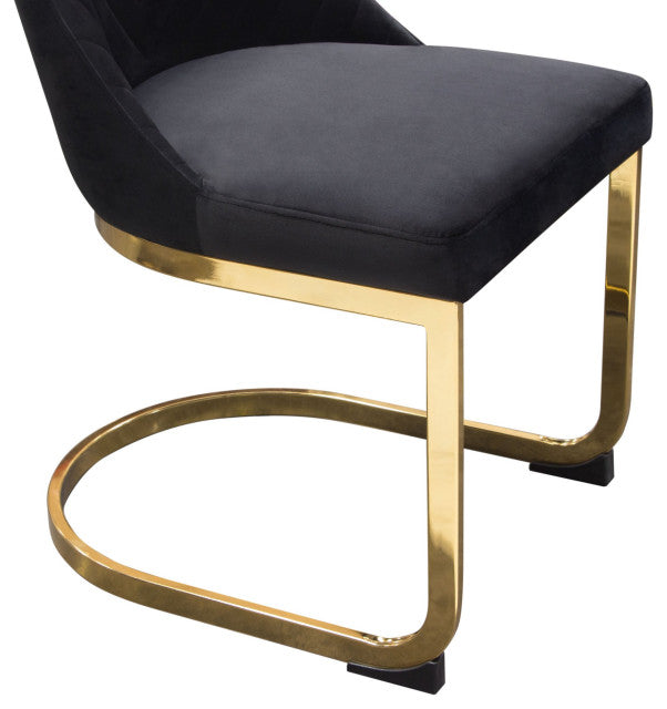 Vogue 2 Dining Chairs With Gold Metal Base, Black Velvet By Diamond Sofa